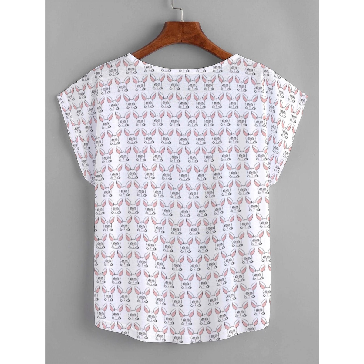 - Short sleeve, crew neck, curved hem.